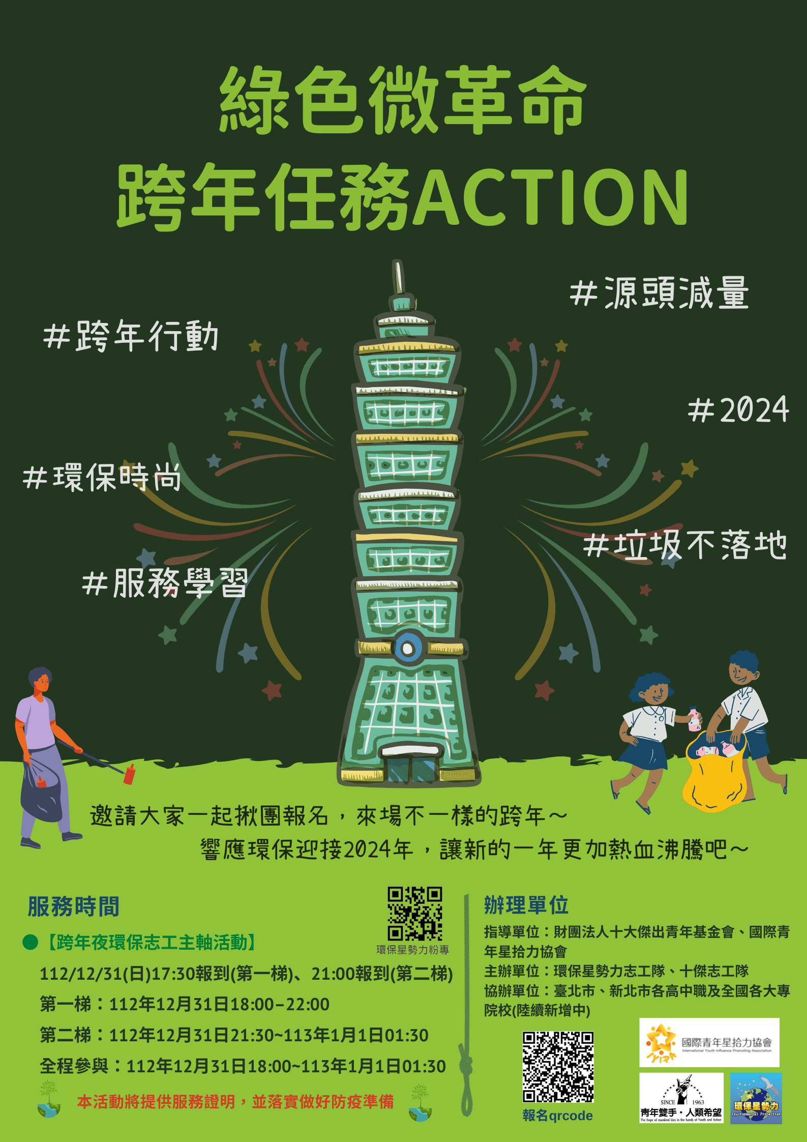 *112.12.31【轉知】青年志工團隊──環保星勢力志工隊辦理「2023-2024綠色微革命-跨年任務 ACTION」志工招募