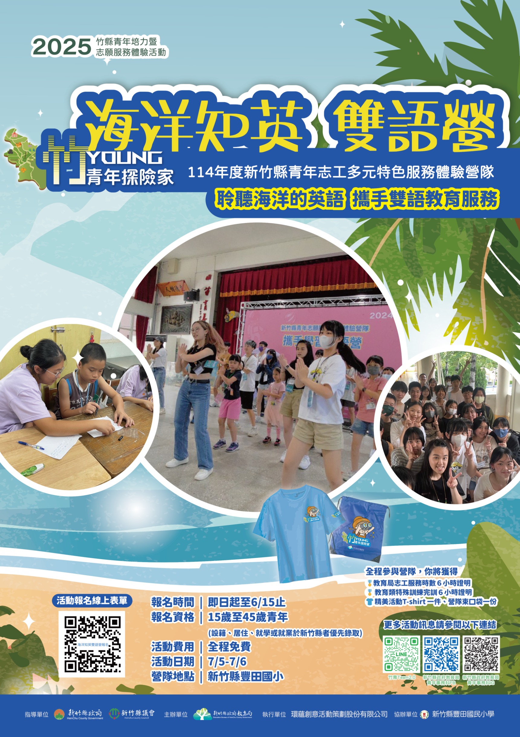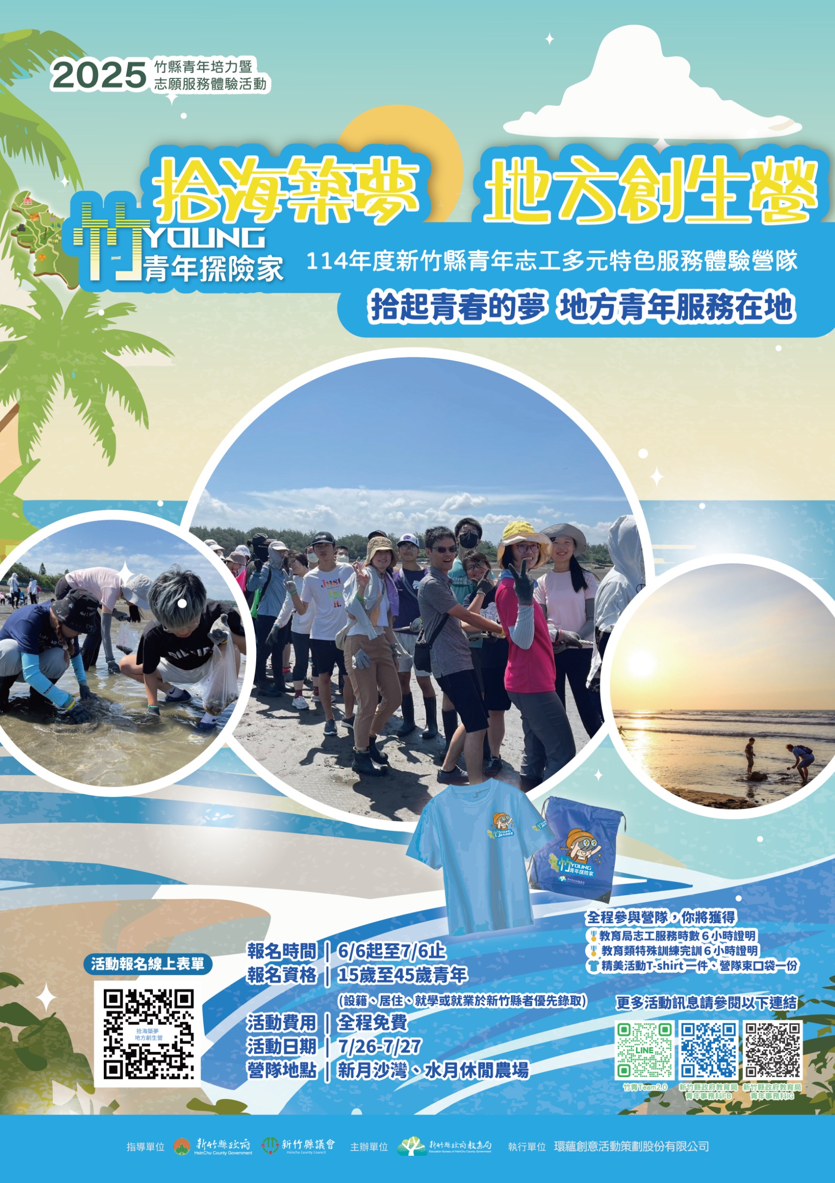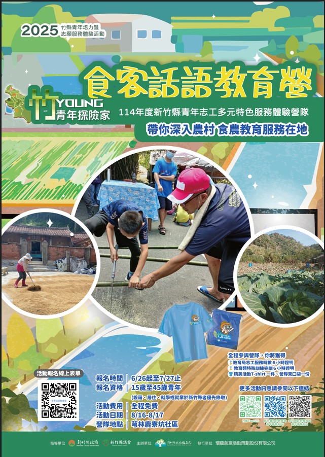 【轉知】新竹縣政府教育局辦理「114年度新竹縣青年志工多元特色服務體驗營隊」