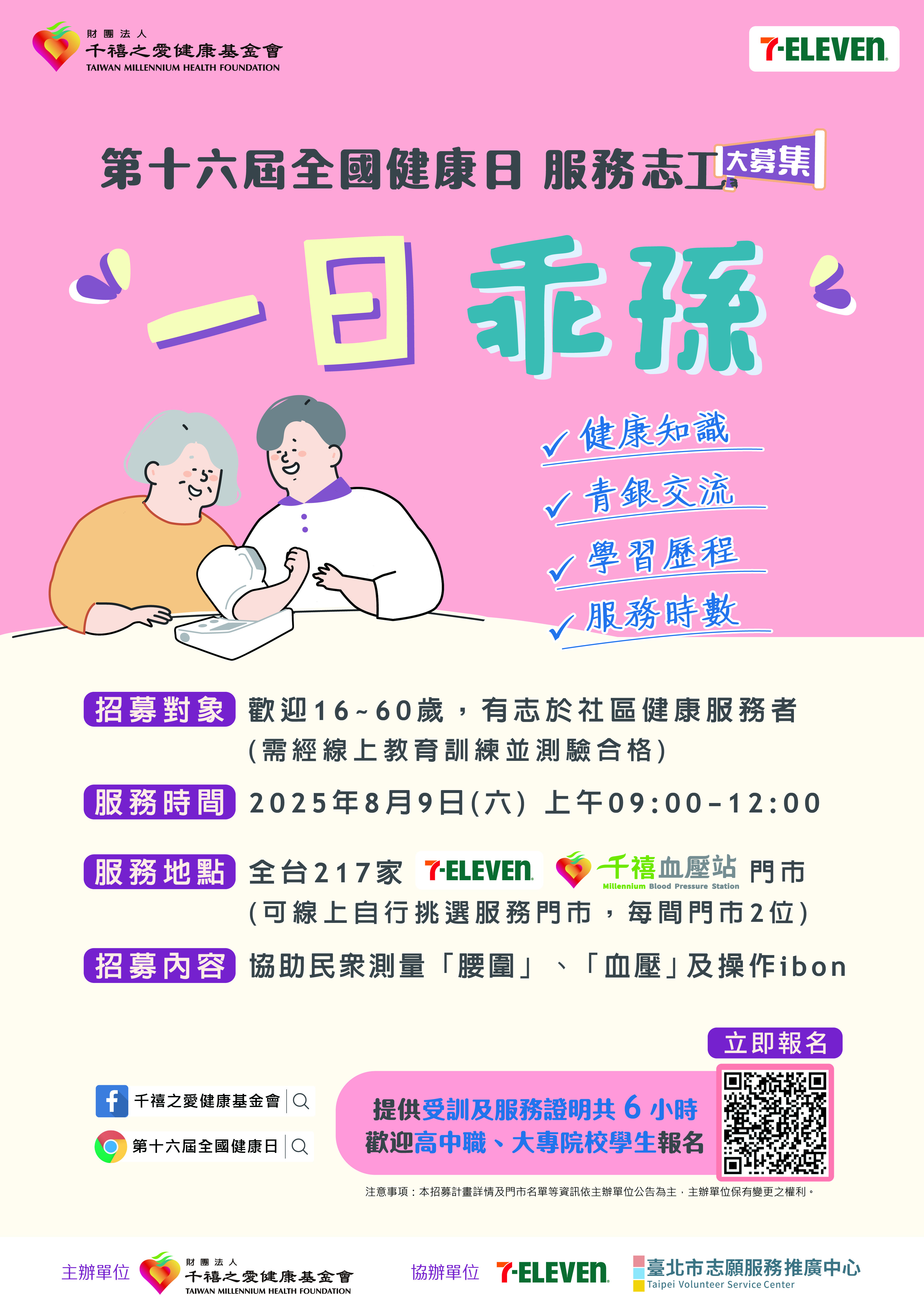 【轉知】千禧之愛健康基金會辦理「2025全國健康日」乖孫志工召募