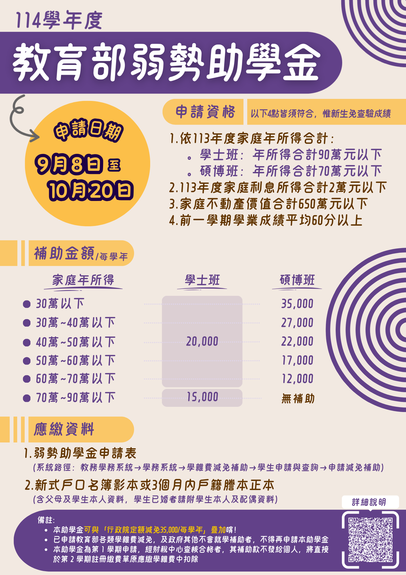 【助學措施】114學年度弱勢助學金申請至10/20截止!