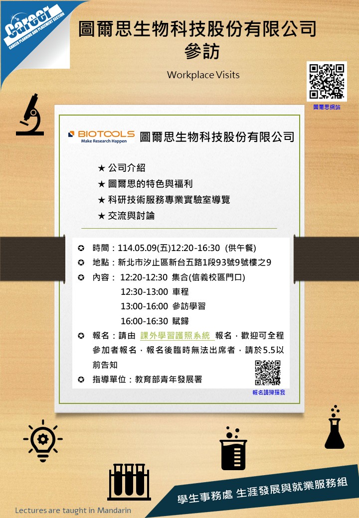 ★內容:公司介紹、圖爾思的特色與福利、科研技術服務專業實驗室導覽、交流與討論