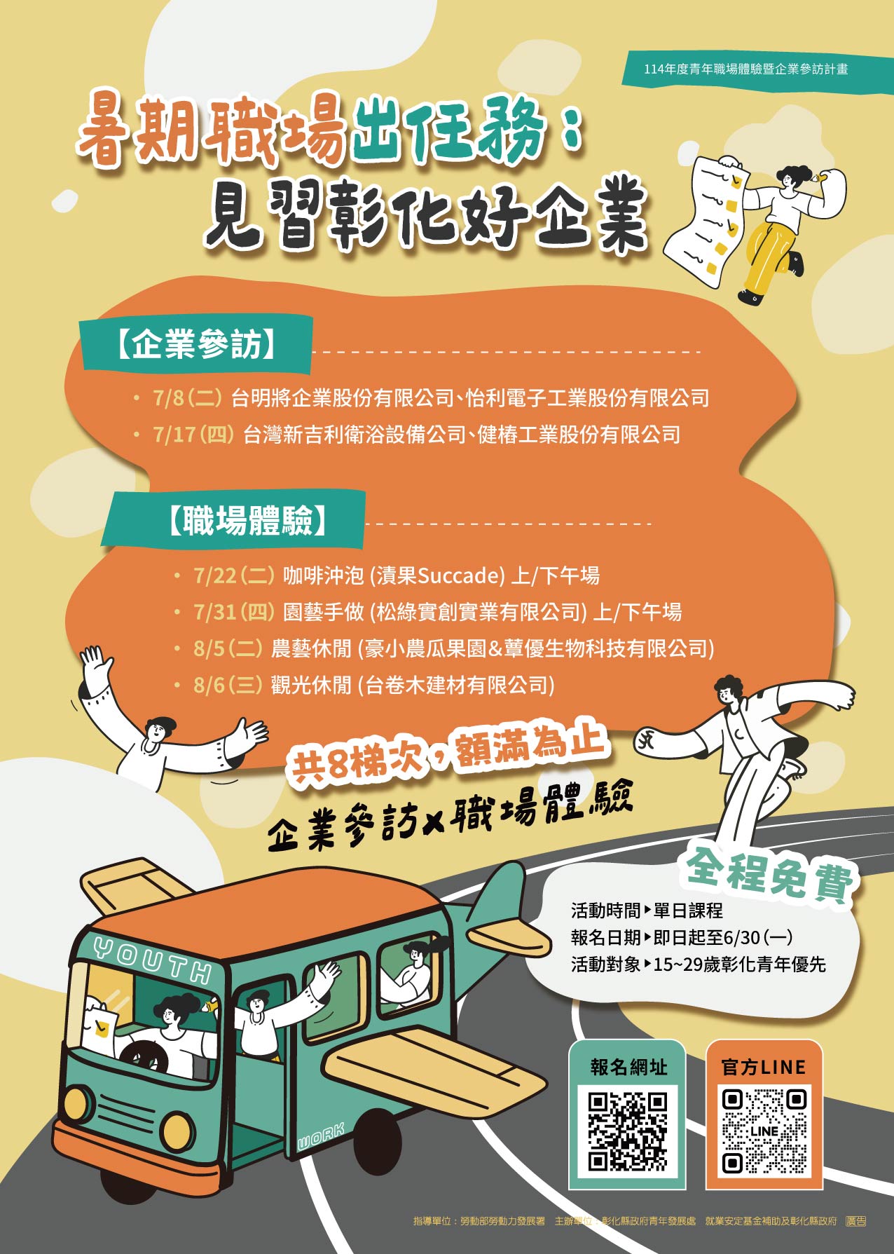 (轉知)114年「暑期職場出任務:見習彰化好企業」活動