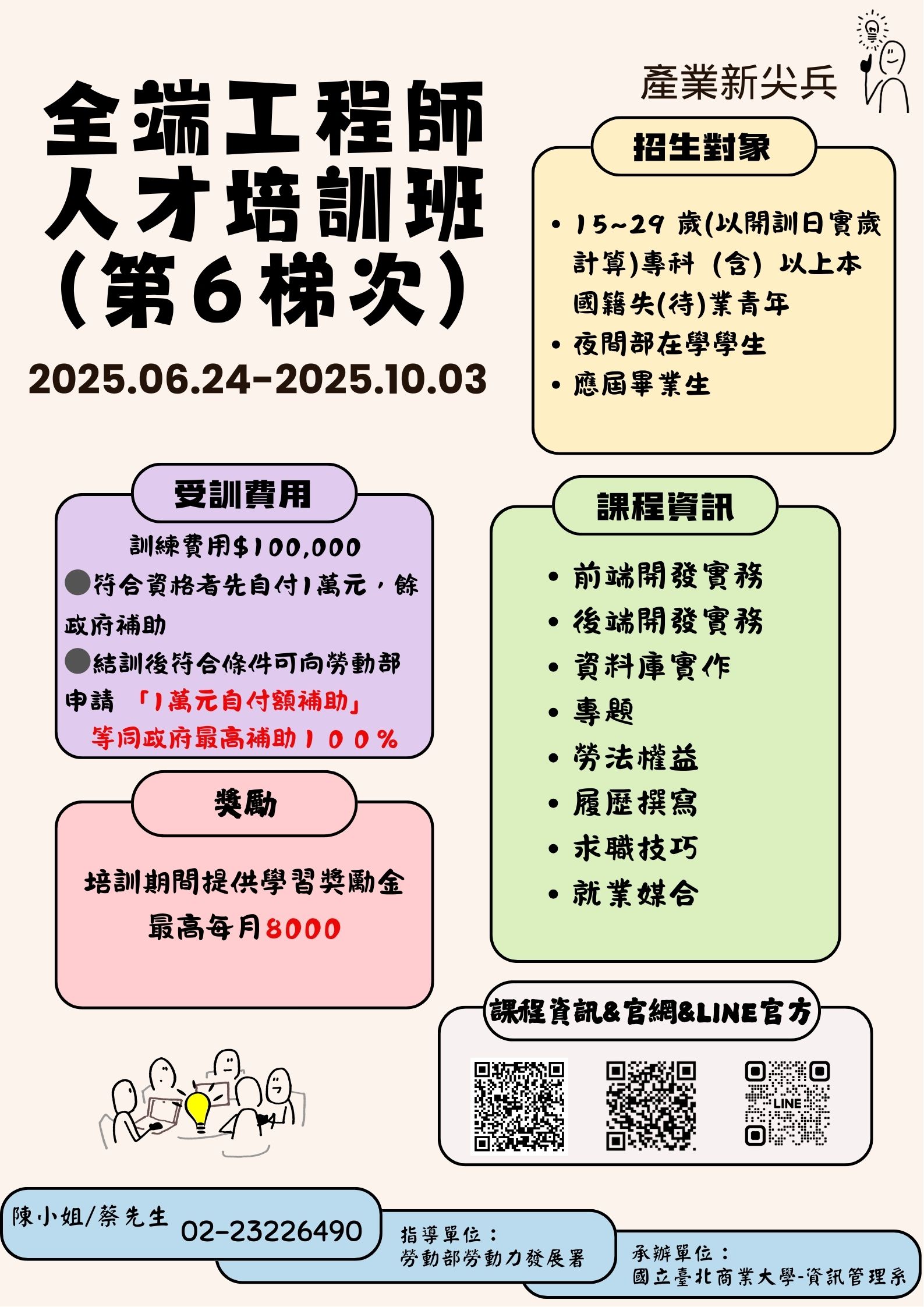 四、課程諮詢專線:(02)2322-6490,Line諮詢官方帳號:@914fhelz,加入連結:https://lin.ee/3KHxoqT