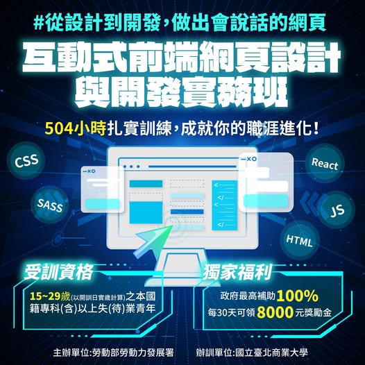 二、符合資格條件及規定者,政府全額補助訓練費用,訓練期間每人每月最高可領八千元學習獎勵金。