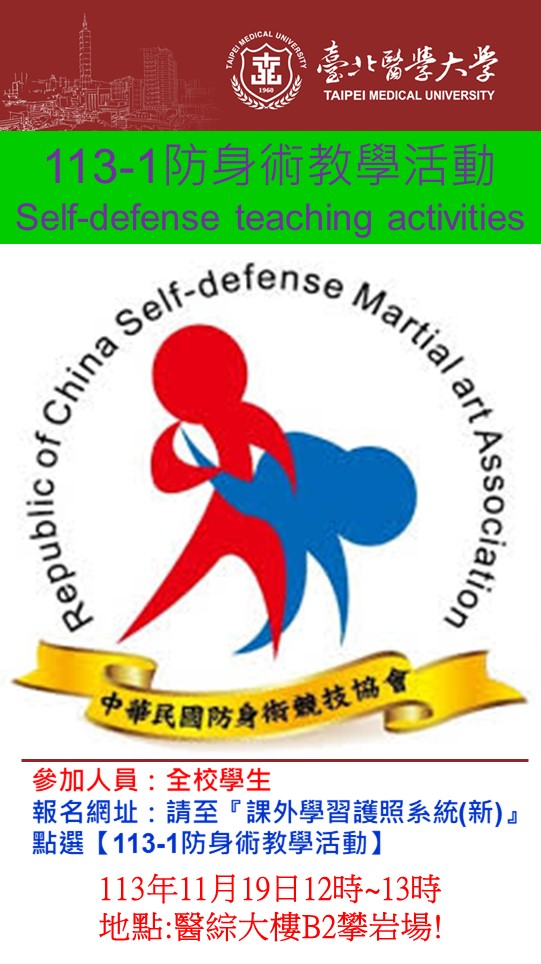 三、報名方式:請同學們上課外學習護照系統→查詢 關鍵字:113-1防身術教學活動