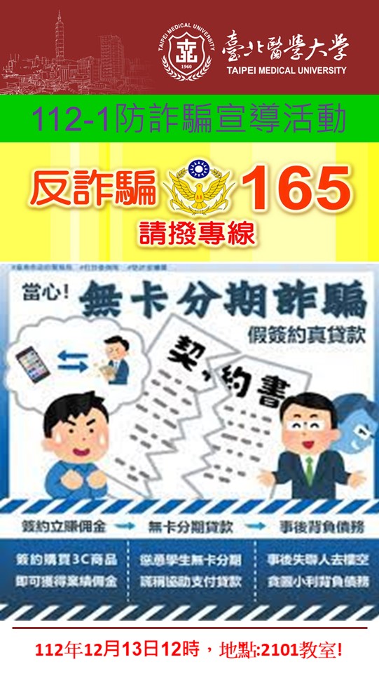 三、報名方式:請同學們上課外學習護照系統→查詢 關鍵字:112-1防詐騙宣導活動